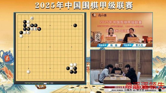贵州队世界冠军江维杰九段在第二台的较量更是精彩纷呈。执白的他始终掌控着局势,如同回龙塔俯瞰整个乌江寨,全局在胸。虽然中盘时因方向判断失误而一度被追成均势,但白棋始终拥有巨大的时间优势。凭借深厚功力稳扎稳打,江维杰236手中盘战胜林子杰五段,为贵州队锁定胜局。